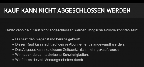 Der Kauf wird mit einer Fehlermeldung entsprechend abgebrochen. Was also nun tun, um den Kauf doch abschließen zu können? Nun ja, es gibt 2 Wege. Du kannst den Support anschreiben, er kann dir die Erweiterung auf deinen Account aktivieren. Dies kann aber jedoch sehr nerven, wenn du nun bei jeder Erweiterung, die du kaufen willst, dich an den Support wenden musst. Zudem musst du dann auch noch warten, bis er überhaupt auf dein Ticket reagiert, somit kannst du die Erweiterung erst viel später und nicht sofort spielen.