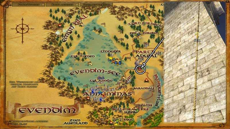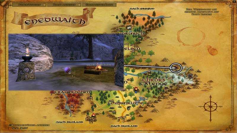 Reist dazu am besten von Bruchtal aus nach Hrimbarg, dies bringt euch am nächsten zum Ziel.