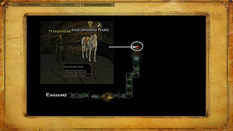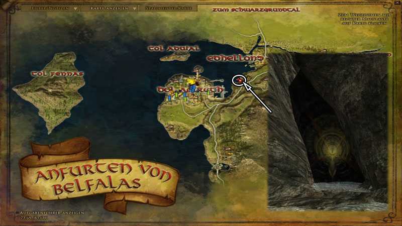 Hinweis:Damit ihr in West Gondor in die Höhle Avorrim kommt ist es zwingend Erforderlich das ihr das Epos ( Vol. IV. Buch 1: Der Weg nach Gondor Quest: Buch 1: Kapitel 8: Dorthaneth ) abgeschlossen habt |