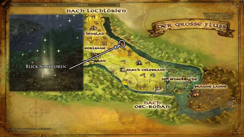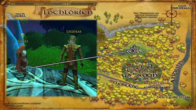 Reist mit eurer Rufport Karte wenn vorhanden (Rückkehr zum Düsterwald) in die Feste Galadh, oder nehme eine alternative [ Reiseroute ] Empfohlen über Bruchtal nach Inneres Caras Galadhon, und von dort aus weiter zur Feste Galadh.