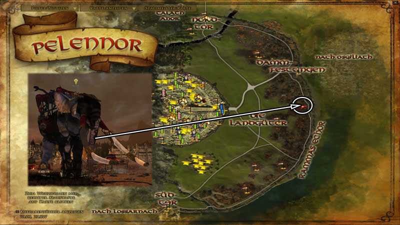 Reist nun ins Normale Osgiliath am besten über Minas Tirith nach Süd Itihlien (vor der Schlacht) - Faramirs Aussichtspunkt
