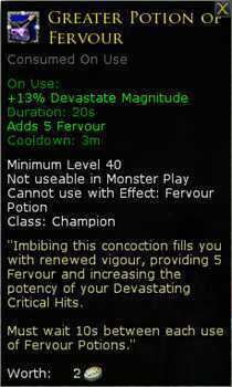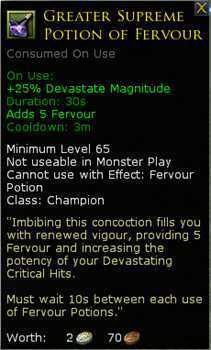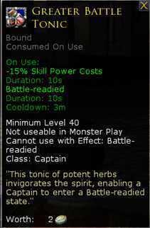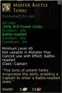 Diese mächtigen Getränke erfrischen Hauptleute und versetzen sie so sofort in einen kampfbereiten Zustand und reduzieren die Kraftkosten ihrer Fertigkeiten 10 Sekunden lang um 40 %.