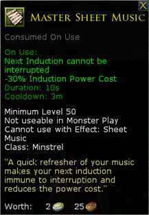 Notenblätter verhindern den Anwendungsverzögerungs-Rückstoß für alle Fertigkeiten und verringern die Fertigkeiten-Kraftkosten 10 Sekunden lang um bis zu 50 %. Notenblätter sind ab Stufe 20 erhältlich und bieten alle 5 Stufen eine stärkere Version.