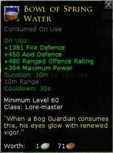 „Schüsseln mit Wasser“ können nun den Durst der Sumpfwächter stillen. Dieses Futter erhöht die Verteidigung gegen Feuer, Schatten, Säure und Frost, den Wert für Fernkampfangriffe und den Kraft-Höchstwert 10 Minuten lang. Dieses Futter ist ab Stufe 58 erhältlich und bietet stärkere Versionen ab Stufe 60 und Stufe 65.