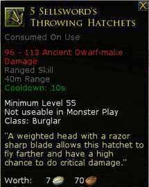 Die Wurfwaffen können von Waffenschmieden hergestellt werden, welche die Rezepte von Schurken-Ausbildern sowie Waffenschmieden (Novize oder Experte) kaufen können.