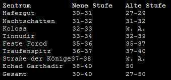 Die Anfangsstufen der Instanzen wurden auf 40 gesenkt, um der neuen Stufe der umgebenden Landschaft zu entsprechen. Das hier stattfindende Epos bleibt auf Stufe 50 und sollte vollständig als ein Spielerlebnis auf Stufe 50 funktionieren, da es viele Instanzen und einzigartige Mobs verwendet.