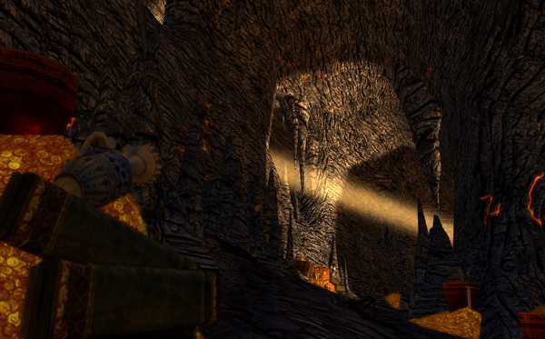 Während man sich der Drachenhöhle nähert, kann man ein warmes Licht erkennen (siehe Abbildung oben). Durch dieses einladende Licht sollen schon viele Abenteurer in die Irre geführt worden sein – und man hat nie wieder etwas von ihnen gesehen oder gehört!